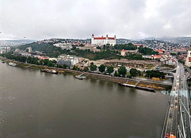 Na zdjęciu: Widok z UFO na Dunaj i Bratysławę. Fot. Kazimierz Netka.