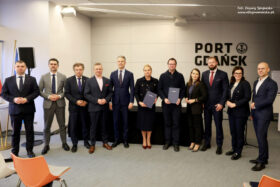 Fot. Cezary Spigarski. Ta nowa inwestycja ma symbol W i posłuży obsłudze największych tankowców, jakie mogą wpłynąć na Bałtyk. Port Gdańsk staje się centrum rozwoju energetycznego Polski Polska poprawia swe bezpieczeństwo energetyczne. Ma je wzmocnić nowe stanowisko do przeładunku paliw płynnych w Naftoporcie – na terenie Portu Północnego. Fot. Cezary Spigarski. Uroczyste podpisanie umów w …