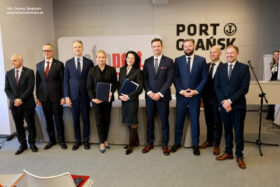 Fot. Cezary Spigarski. Ta nowa inwestycja ma symbol W i posłuży obsłudze największych tankowców, jakie mogą wpłynąć na Bałtyk. Port Gdańsk staje się centrum rozwoju energetycznego Polski Polska poprawia swe bezpieczeństwo energetyczne. Ma je wzmocnić nowe stanowisko do przeładunku paliw płynnych w Naftoporcie – na terenie Portu Północnego. Fot. Cezary Spigarski. Uroczyste podpisanie umów w …