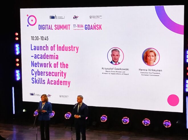Najważniejszym wydarzeniem drugiego dnia Digital Summit w Gdańsku było uruchomienie Sieci Akademii Przemysłowej – w ramach Akademii Umiejętności Cyberbezpieczeństwa – launch of Industry – Academia Network of the Cybersecurity Skills Academy.