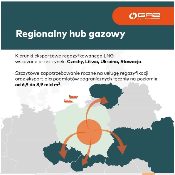W badaniu udział wzięło 14 firm krajowych oraz zagranicznych. Zgłoszone zapotrzebowanie na lata 2031 – 2032 niemal czterokrotnie przekroczyło planowaną moc instalacji drugiej jednostki FSRU (ang. Floating Storage Regasification Unit), która byłaby zdolna do regazyfikacji 4,5 mld m3 paliwa gazowego rocznie. Prawie połowa regazyfikowanego LNG miałaby zostać przeznaczona na eksport w kierunku Ukrainy, Słowacji, Czech oraz Litwy. Szacowany wolumen eksportu wynosi od 6,9 do 8,9 mld m3, a w kolejnych dekadach może spaść do ok. 2,6 mld m3/r. – poinformowała Iwona Dominiak – rzecznik prasowy GAZ-SYSTEM.