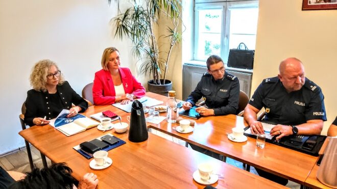 Jesteśmy, szanowni państwo, w trakcie spotkania zespołu do spraw przemocy, który funkcjonuje przy wojewodzie pomorskiej. W skład tego zespołu wchodzą przedstawiciele wydziałów Pomorskiego Urzędu Wojewódzkiego: Zdrowia, Państwowego Ratownictwa Medycznego, Spraw Społecznych, ale także są przedstawiciele Policji: Wydziału Prewencji, koordynator Niebieskiej Karty. Rozmawiamy głównie o sprawach związanych z artykułem 12 A ustawy o przeciwdziałaniu przemocy w rodzinie, który to przepis reguluje współpracę trzech podmiotów, czyli pracownika socjalnego, policji oraz lekarzy. Chcieliśmy zapytać te służby jak ta współpraca się układa, co poprawić, gdzie trzeba coś wzmocnić gdzie są jakieś wąskie gardła – na tym się dzisiaj skupiliśmy. A teraz oddam głos pani minister – powiedziała Anna Olkowska-Jacyno – wicewojewoda pomorska.