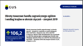 Rośnie polski eksport oraz import. Bilans polskiego handlu zagranicznego jest prawie zrównoważony – obliczył Główny Urząd Statystyczny, analizując okres styczeń – sierpień 2019 r.