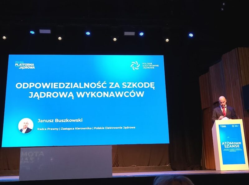 Temat: „Odpowiedzialność za szkodę jądrową wykonawców” przedstawił Janusz Buszkowski – radca prawny, zastępca kierownika, Dział zarządzania ryzykiem Regulacyjnym PEJ: