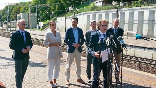 – Znajdujemy się chyba na najpiękniejszym dworcu kolejowym w Polsce, ale też w miejscu, gdzie naprawdę widać ruch pociągów i ruch pasażerów, tak że pan minister Piotr Malepszak ma olbrzymi ból głowy jak zrobić, żeby tych pociągów było więcej, a przepustowość linii była największa – powiedział, inaugurując konferencję, Jacek Karnowski – wiceminister funduszy i polityki regionalnej.