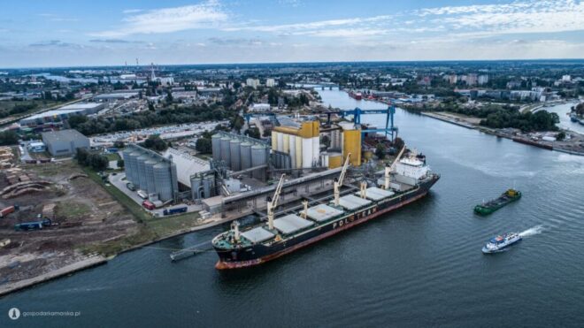 W pierwszej połowie 2025 roku przez portowe nabrzeża przeszło nieco ponad 1,1 mln ton zbóż (w tym samym okresie ub.r. było to 1,5 mln ton), załadowanych na 212 statków. Jeśli chodzi o ruch lądowy, to od początku roku rozładowano ok. 39 tys. samochodów ze zbożem. W ruchu kolejowym obsłużono 380 wagonów z ziarnem.