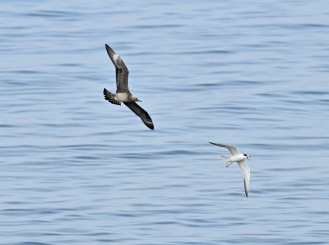 Na zdjęciu: Wydrzyk ostrosterny i rybitwa rzeczna. Fot. Gerard Bela.